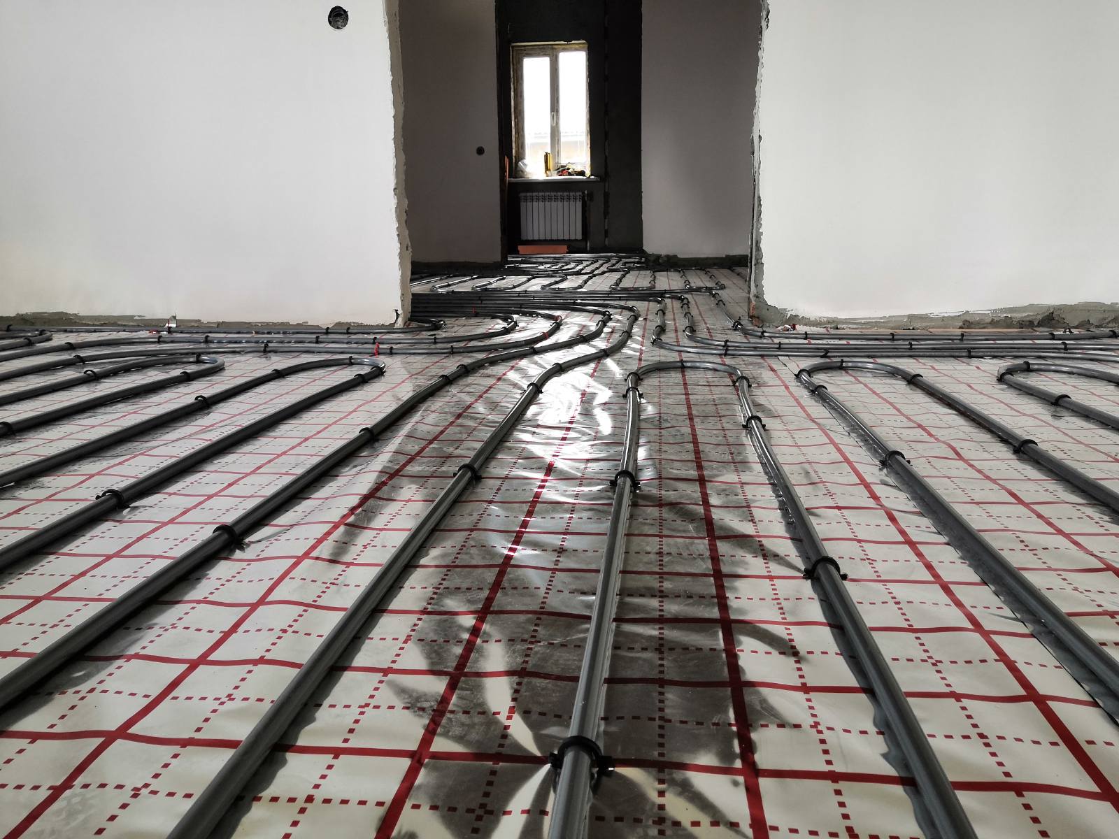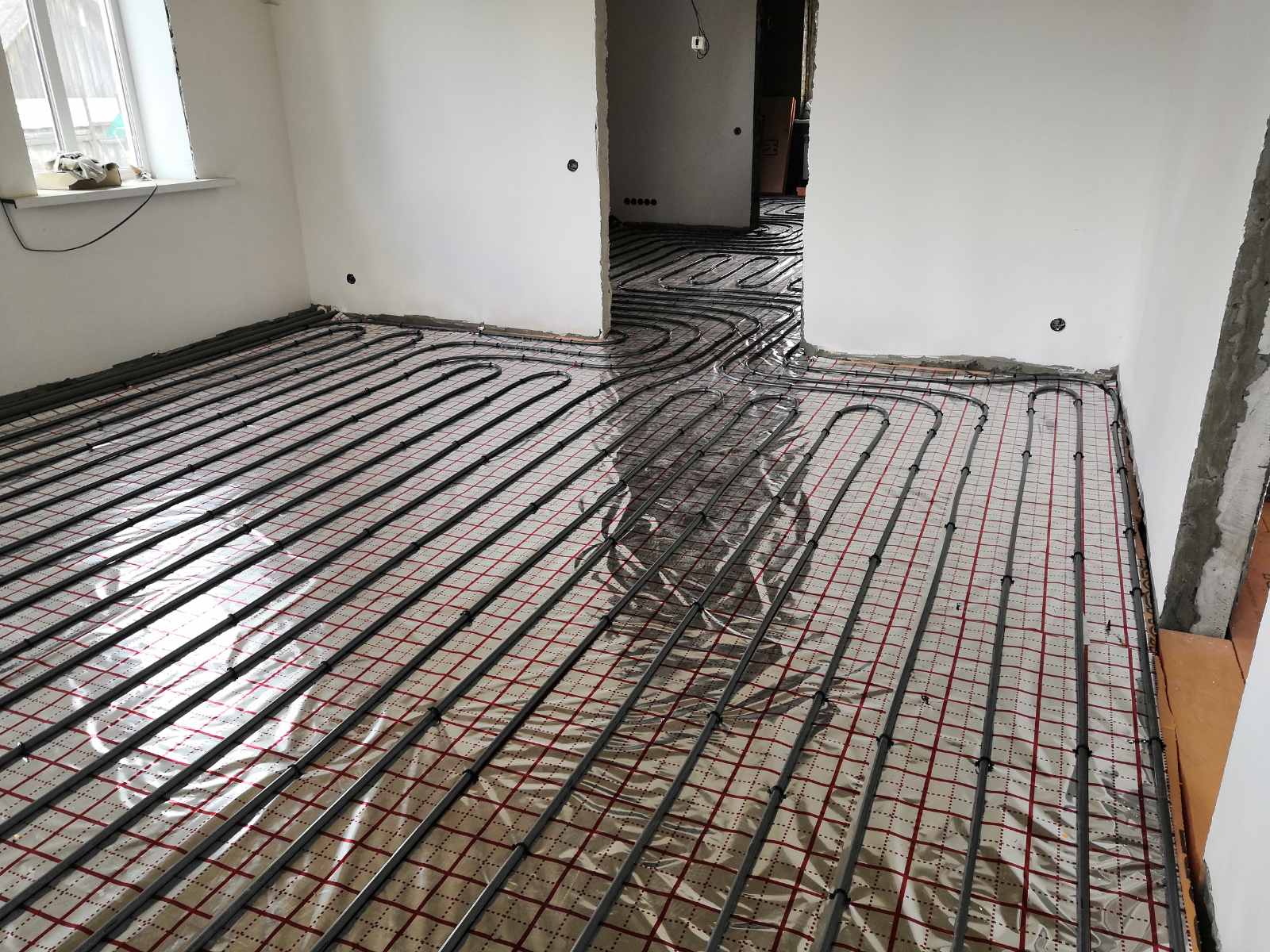 Монтаж системы отопления на базе котла Bosch с раскладкой тёплых полов и радиаторной сети. Разводка системы водоснабжения и установка пожарных вентканалов.